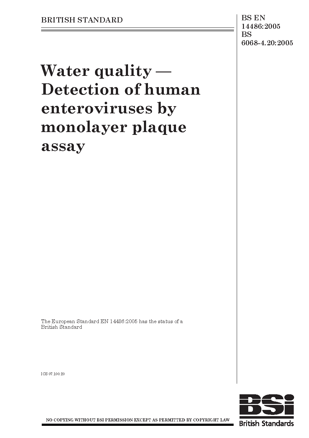 Water quality. Detection of human enteroviruses by monolayer plaque assay