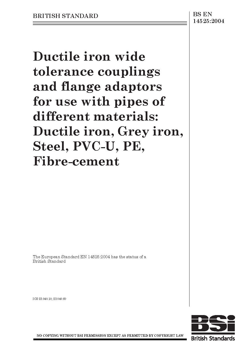 Ductile iron wide tolerance couplings and flange adaptors for use with pipes of different materials: ductile iron, grey iron, steel, PVC-U, PE, fibre-cement