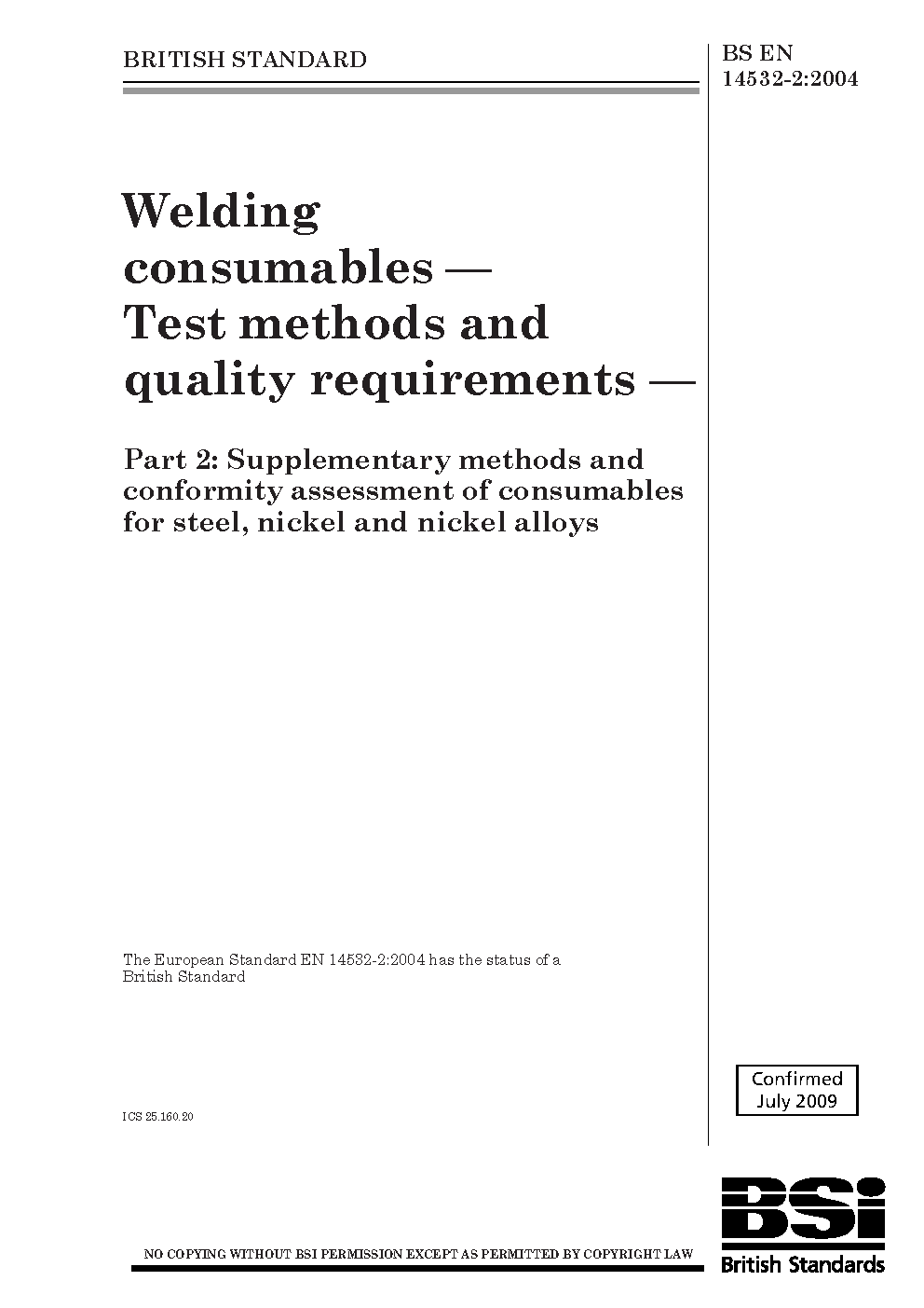 Welding consumables. Test methods and quality requirements Supplementary mekthods conformity assessment of consumables for steel, nickel alloys