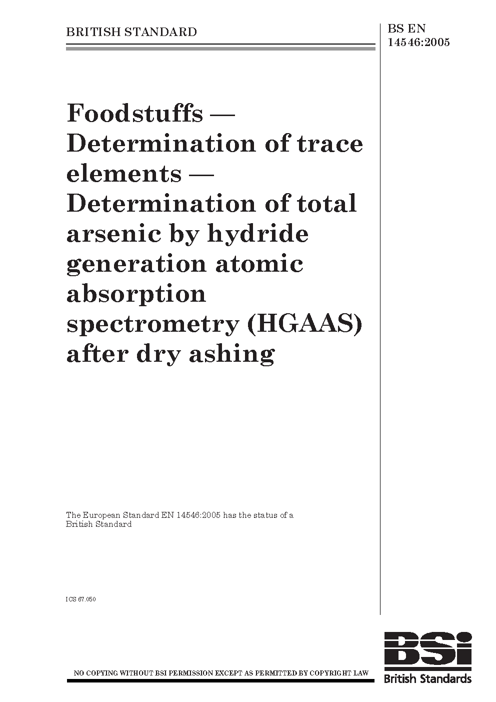 Spectrophotometry;Food testing;Chemical analysis and testing;Determination of content;Arsenic;Trace element analysis;Food products;Atomic absorption spectrophotometry;Hydrides