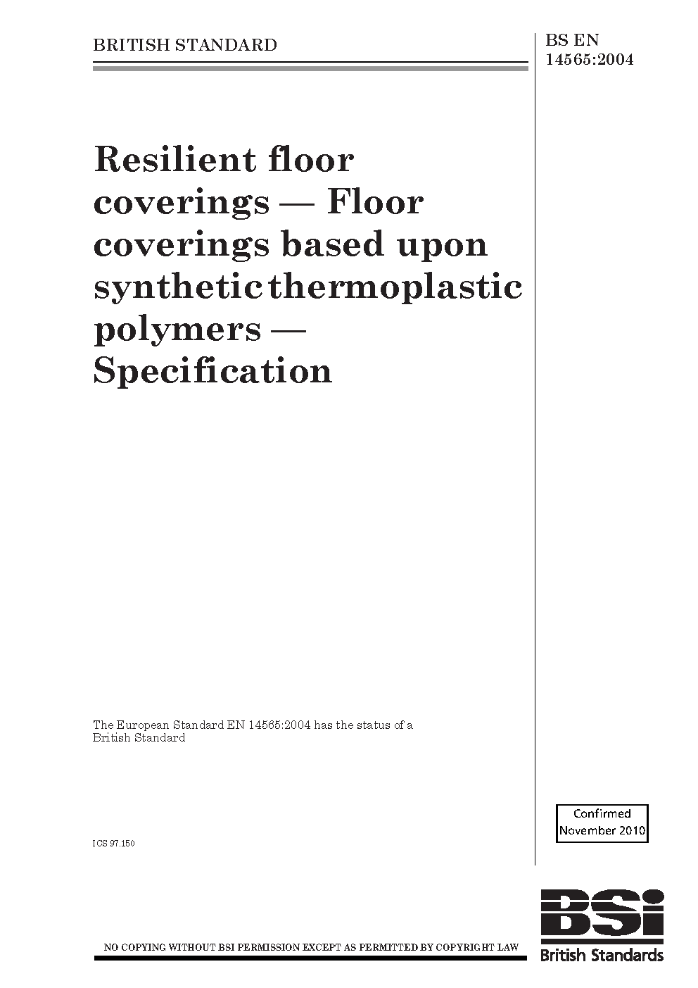 Resilient floor coverings. Floor coverings based upon synthetic thermoplastic polymers. Specification