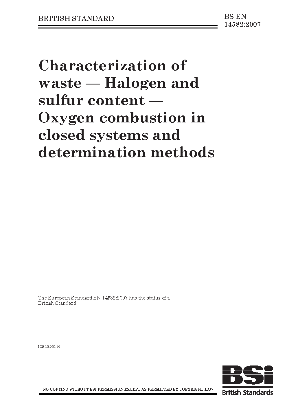 Characterization of waste. Halogen and sulfur content. Oxygen combustion in closed systems and determination methods