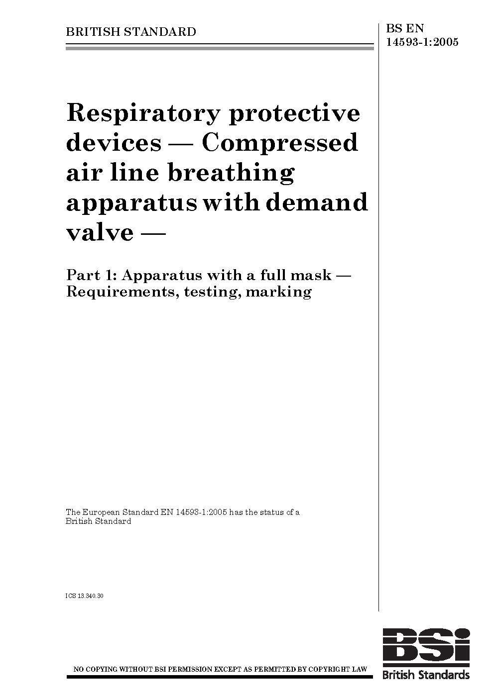 Respiratory protective devices. Compressed air line breathing devices with demand valve Devices a full face mask. Requirements, testing and marking