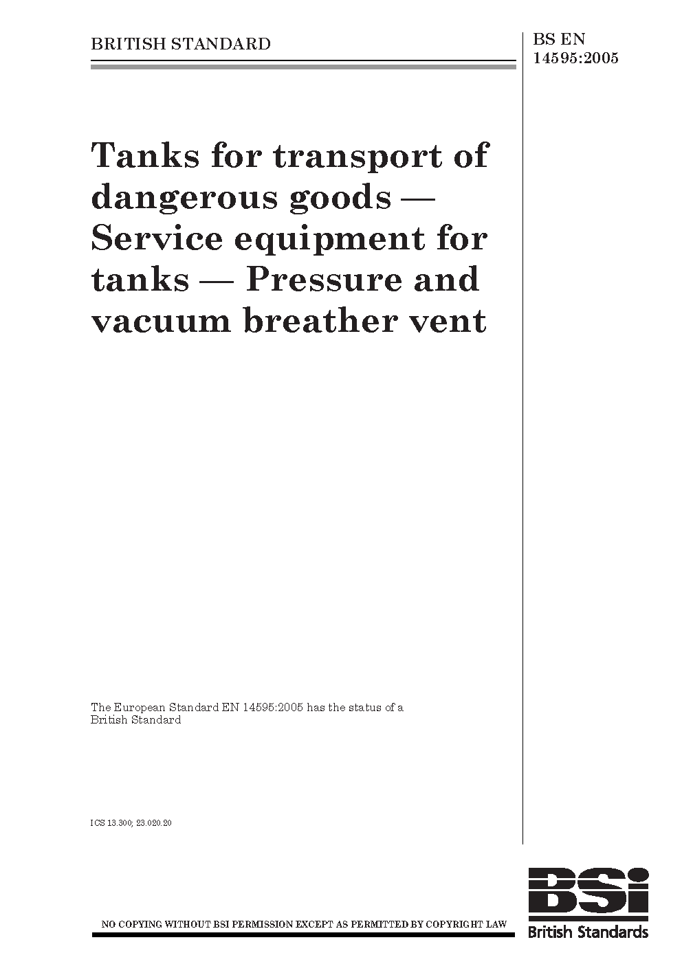 Tanks for transport of dangerous goods. Service equipment for tanks. Pressure and vacuum breather vent