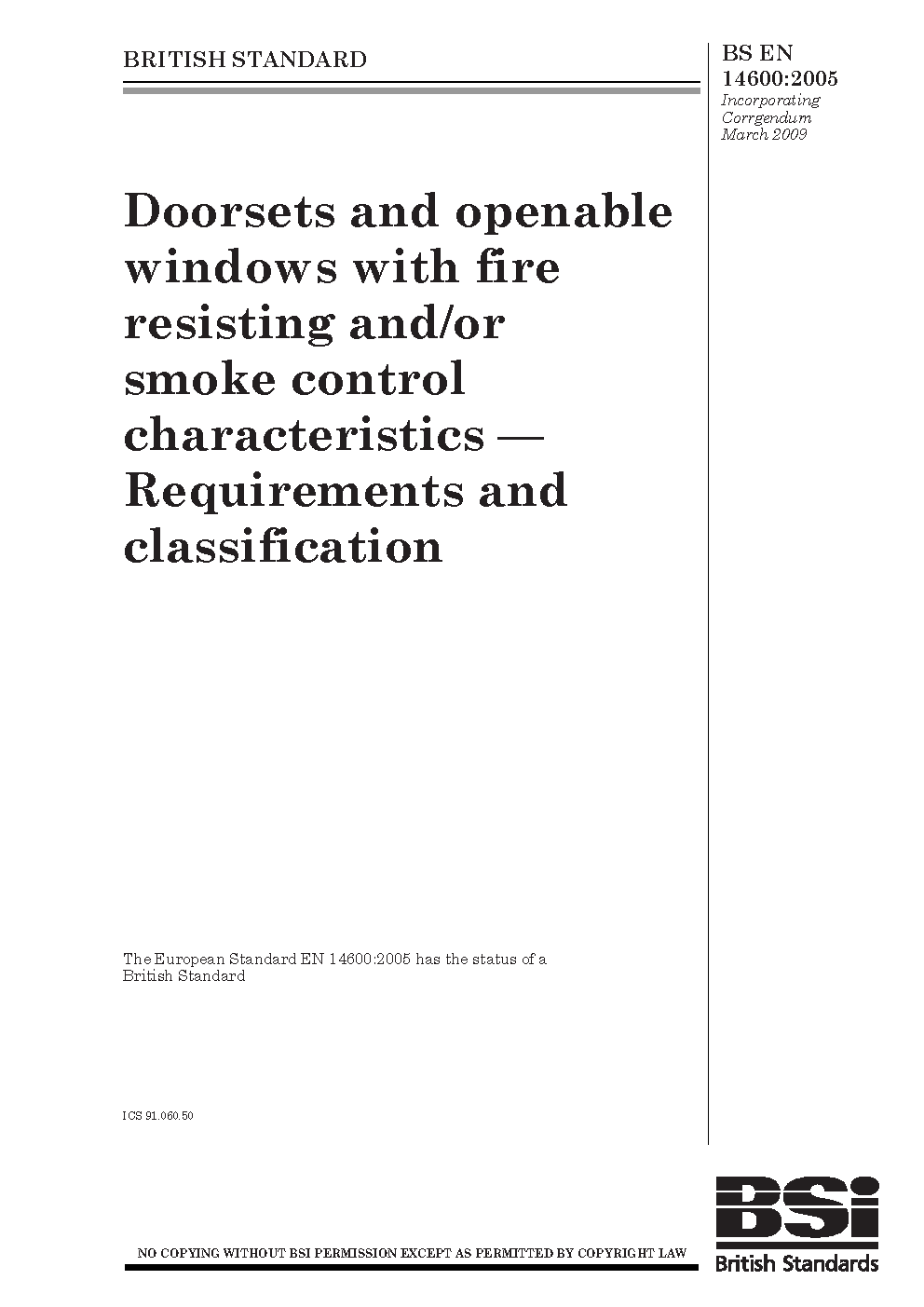 Doorsets and openable windows with fire resisting and/ or smoke control characteristics. Requirements and classification