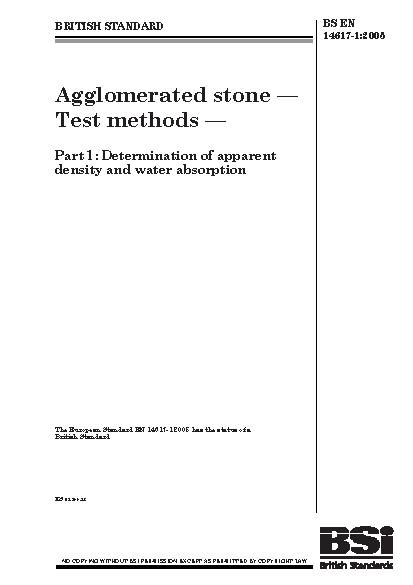 Agglomerated stone. Test methods Determination of apparent density and water absorption