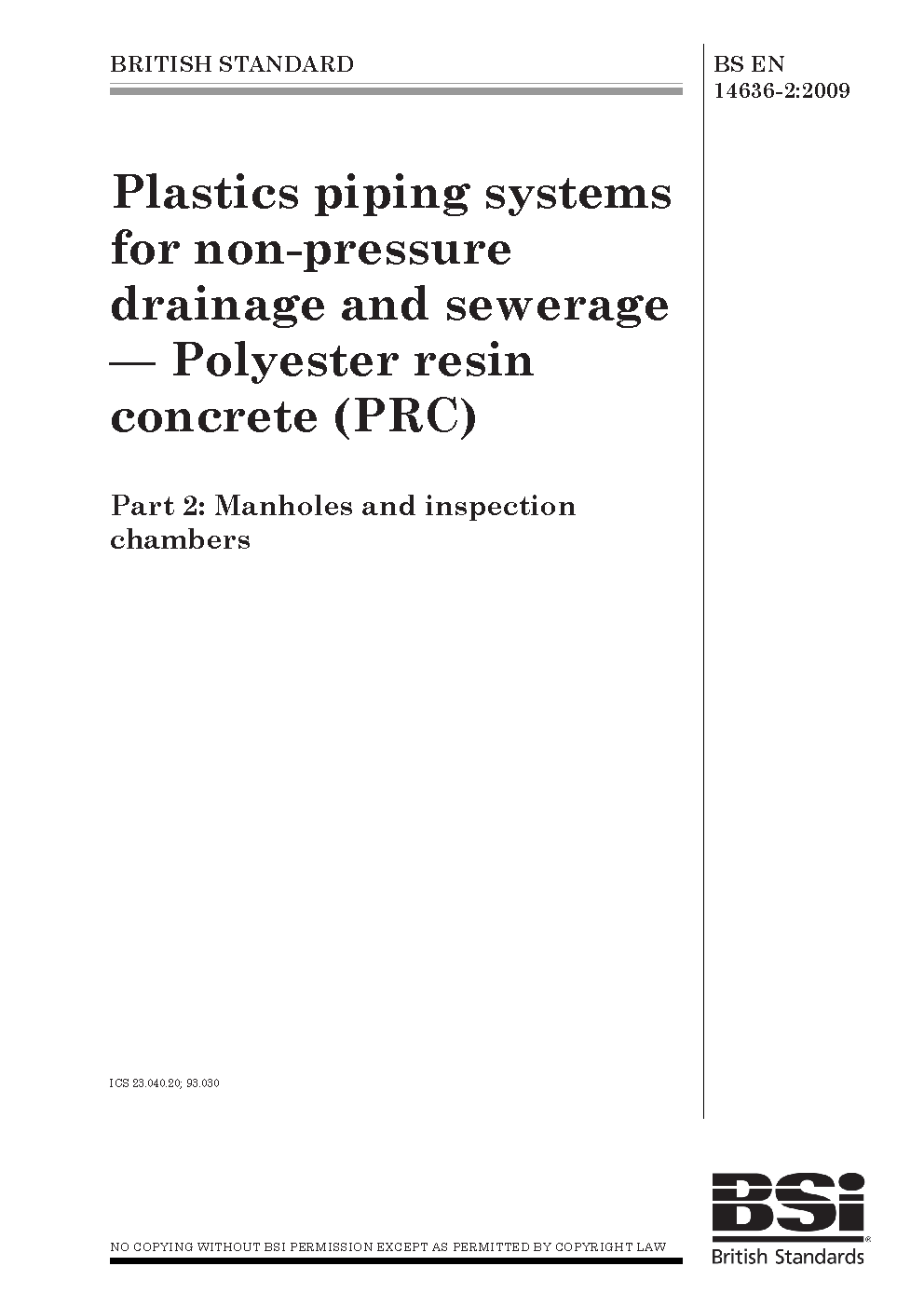 Plastics piping systems for non-pressure drainage and sewerage. Polyester resin concrete (PRC) Manholes inspection chambers
