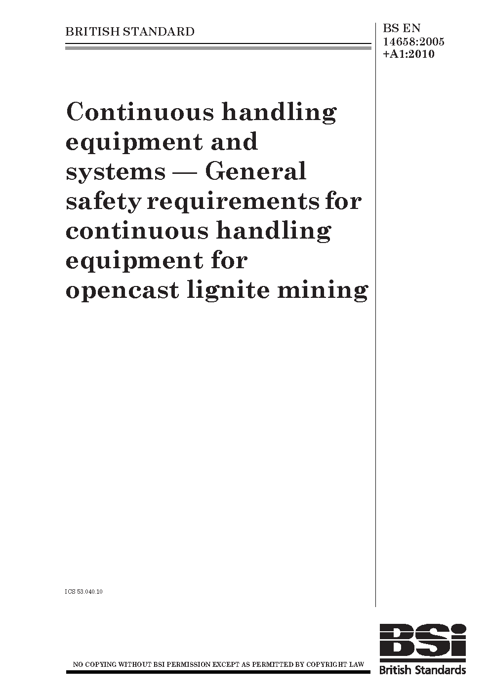 Continuous handling equipment and systems. General safety requirements for continuous handling equipment for opencast lignite mining