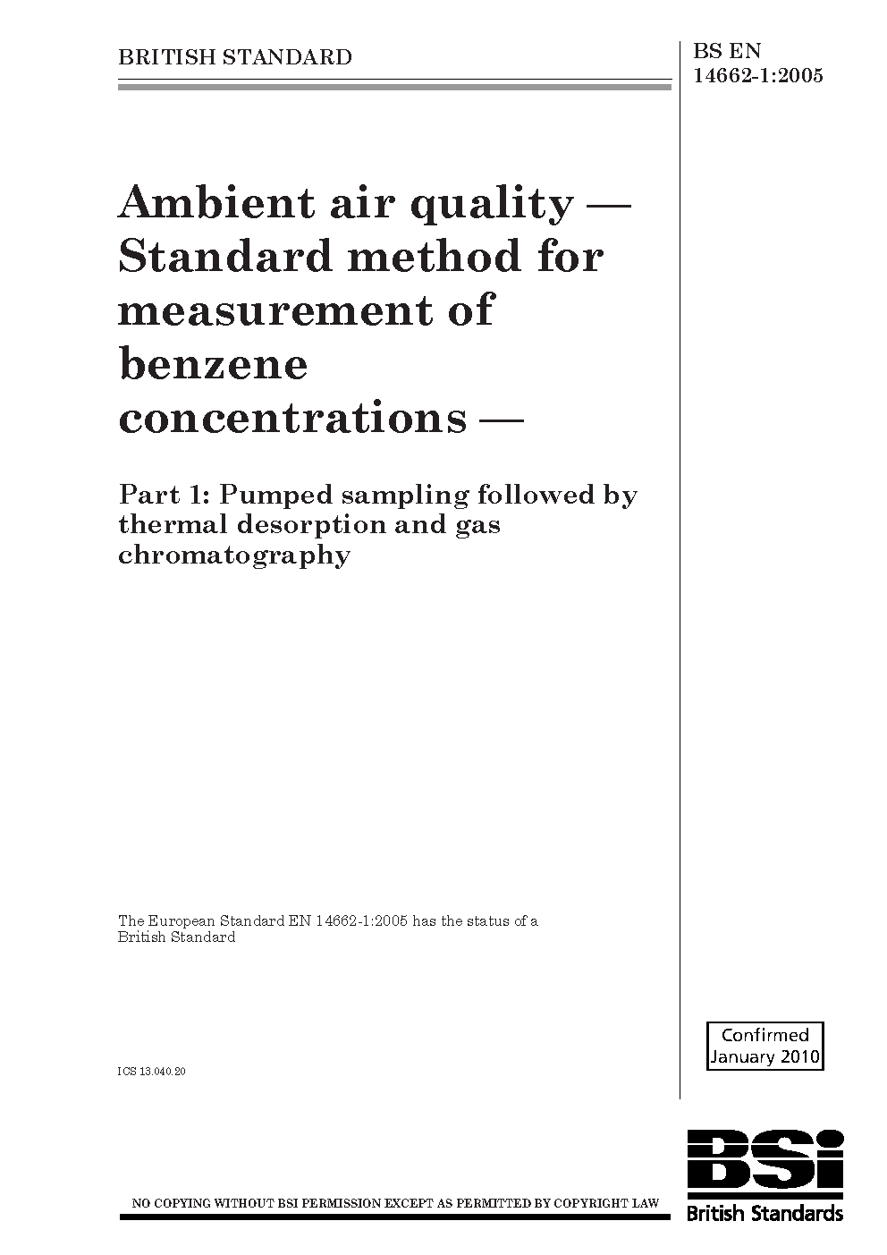 Chemical analysis and testing;Gas analysis;Gas chromatography;Air;Benzene;Desorption;Sampling methods;Air pollution;Test equipment;Quality;Determination of content