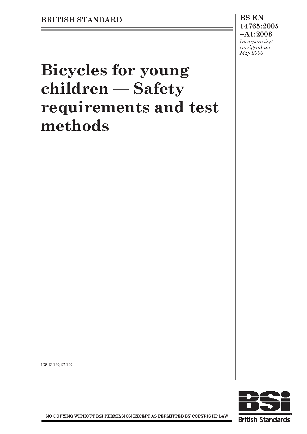 Bicycles for young children. Safety requirements and test methods