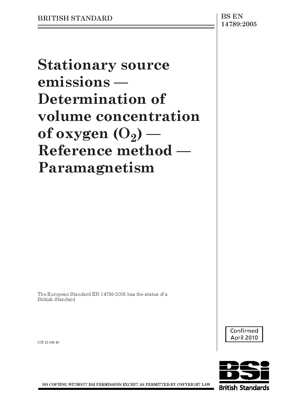 Stationary source emissions. Determination of volume concentration of oxygen (O2). Reference method. Paramagnetism