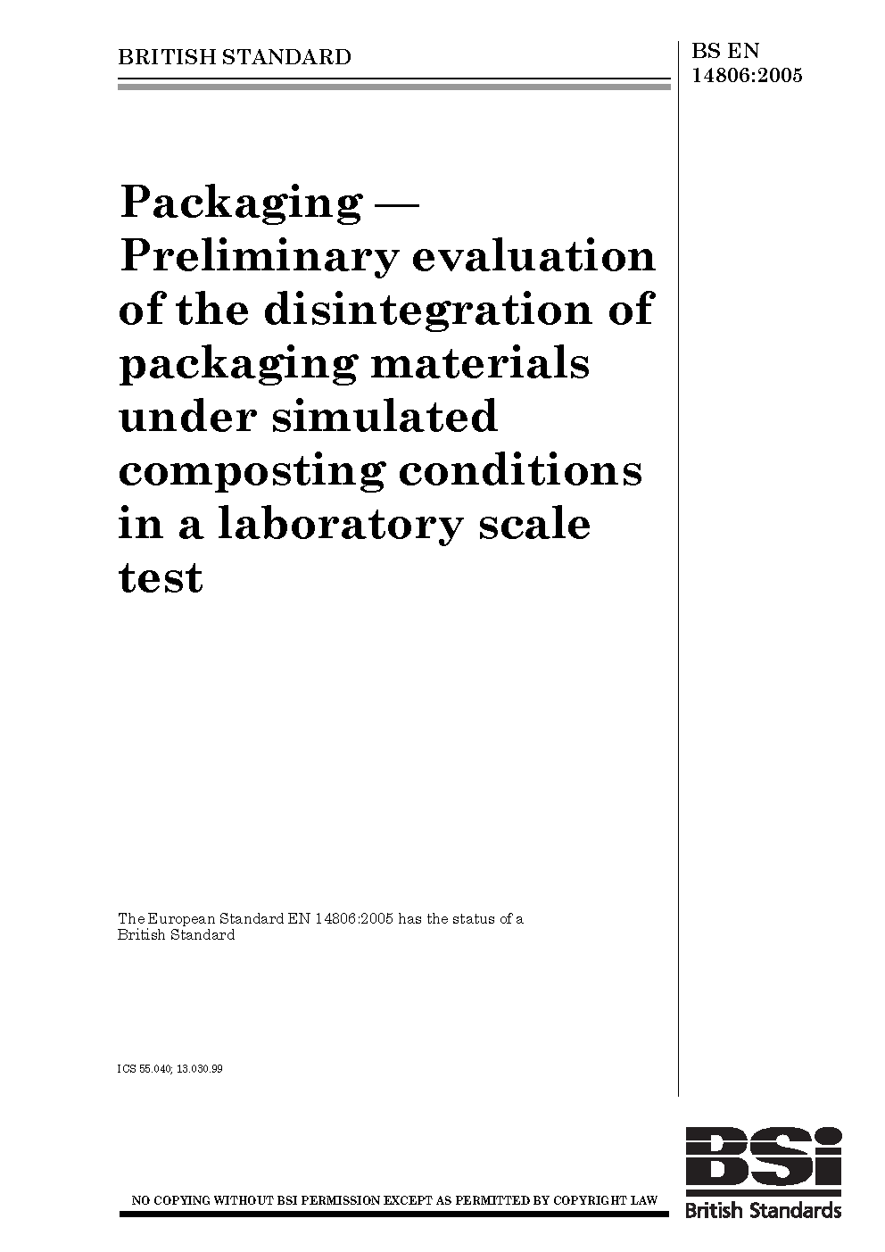 Wastes;Disintegration methods of analysis;Testing conditions;Packaging materials;Chemical analysis and testing;Packaging;Test equipment;Composting (waste);Degradation