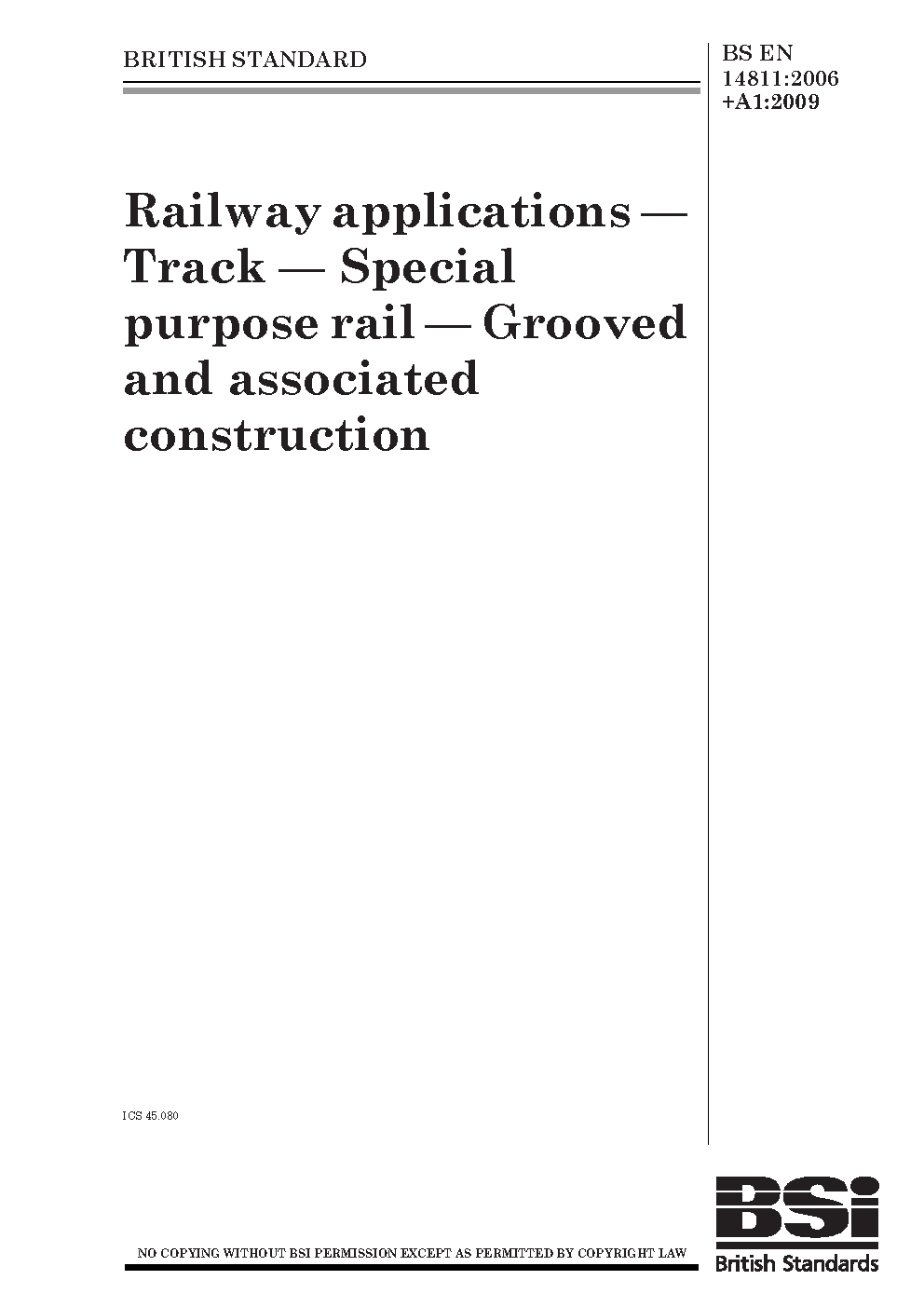Railway applications. Track. Special purpose rail. Grooved and associated construction