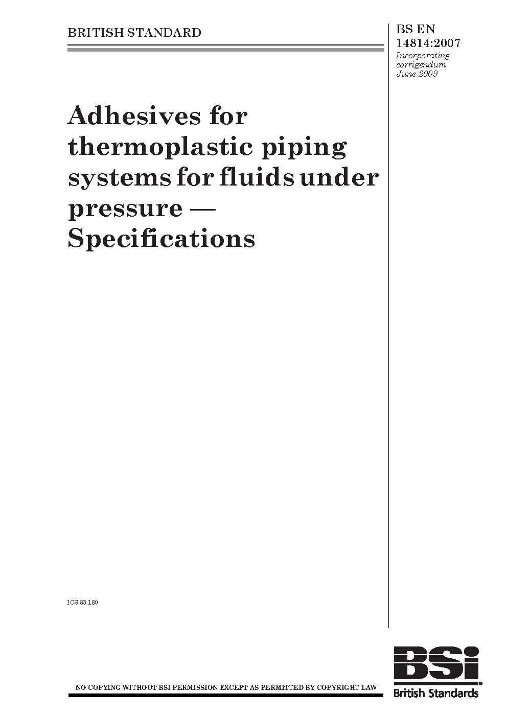 Adhesives for thermoplastic piping systems for fluids under pressure. Specifications