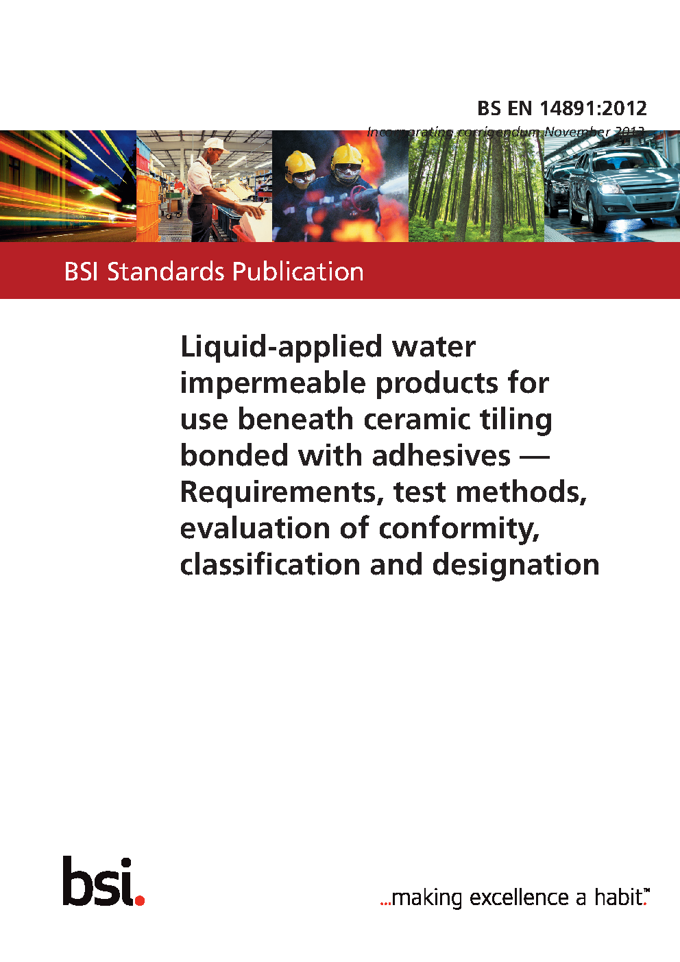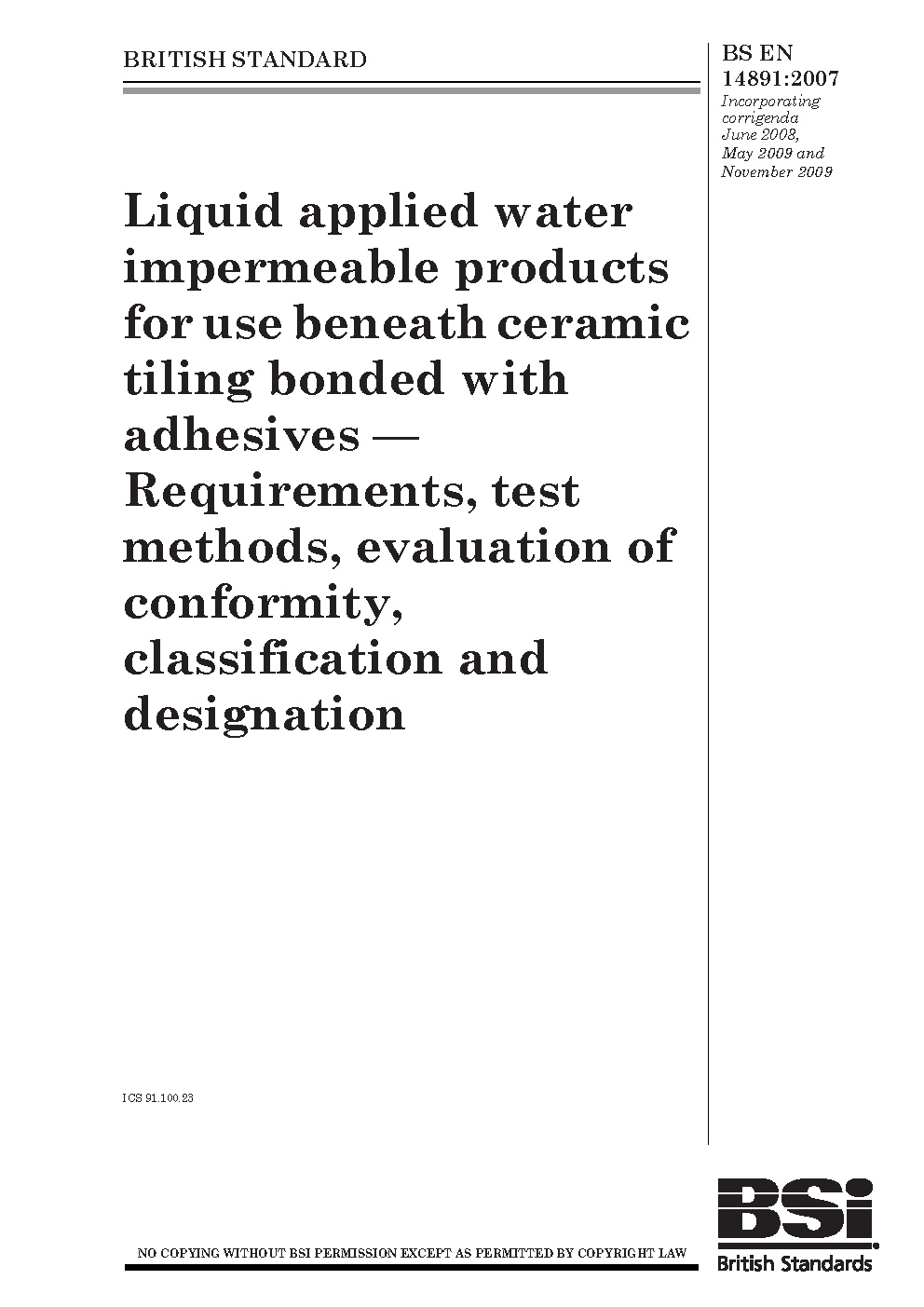 Liquid applied water impermeable products for use beneath ceramic tiling bonded with adhesives. Requirements, test methods, evaluation of conformity, classification and designation