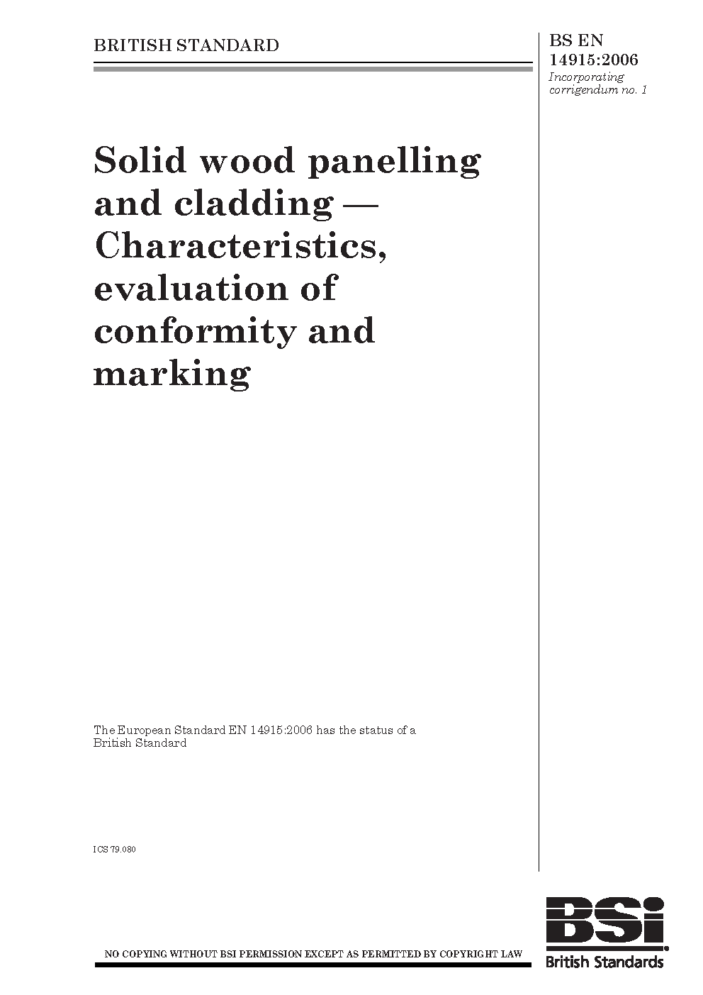 Solid wood panelling and cladding. Characteristics, evaluation of conformity and marking