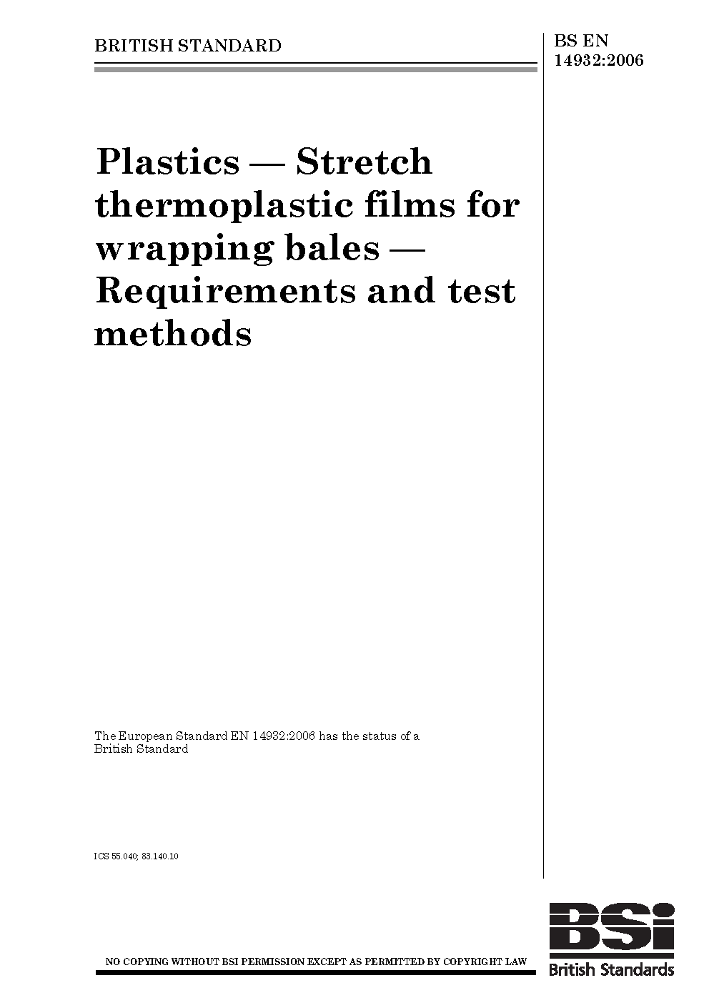Plastics. Stretch thermoplastic films for wrapping bales. Requirements and test methods