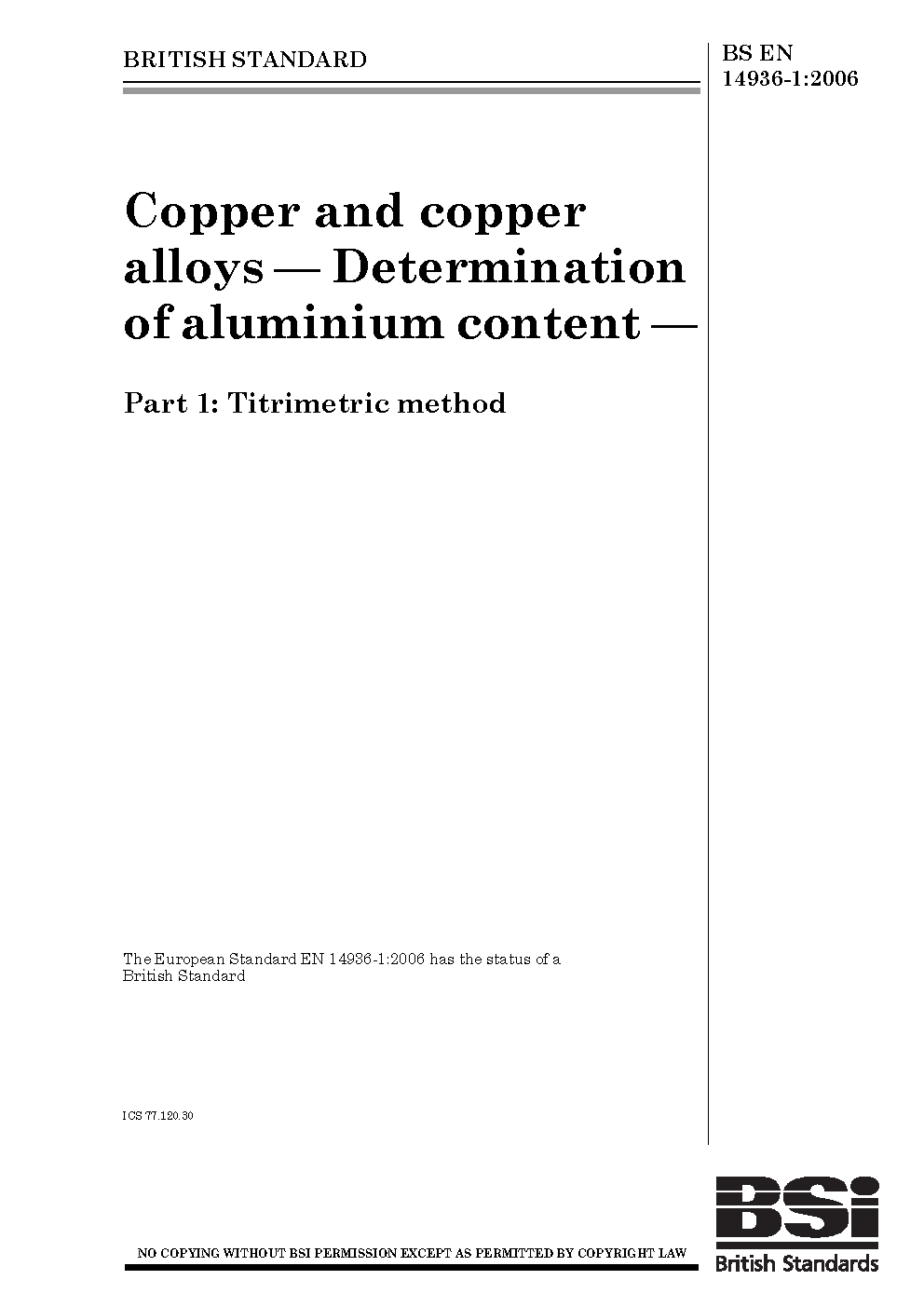 Volumetric analysis;Non-ferrous metals;Determination of content;Chemical analysis and testing;Copper alloys;Copper;Aluminium