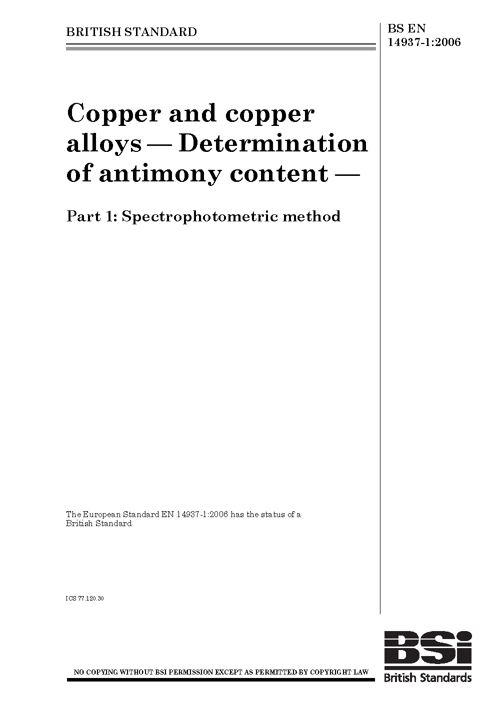 Antimony;Spectrophotometry;Non-ferrous metals;Chemical analysis and testing;Copper;Determination of content;Copper alloys