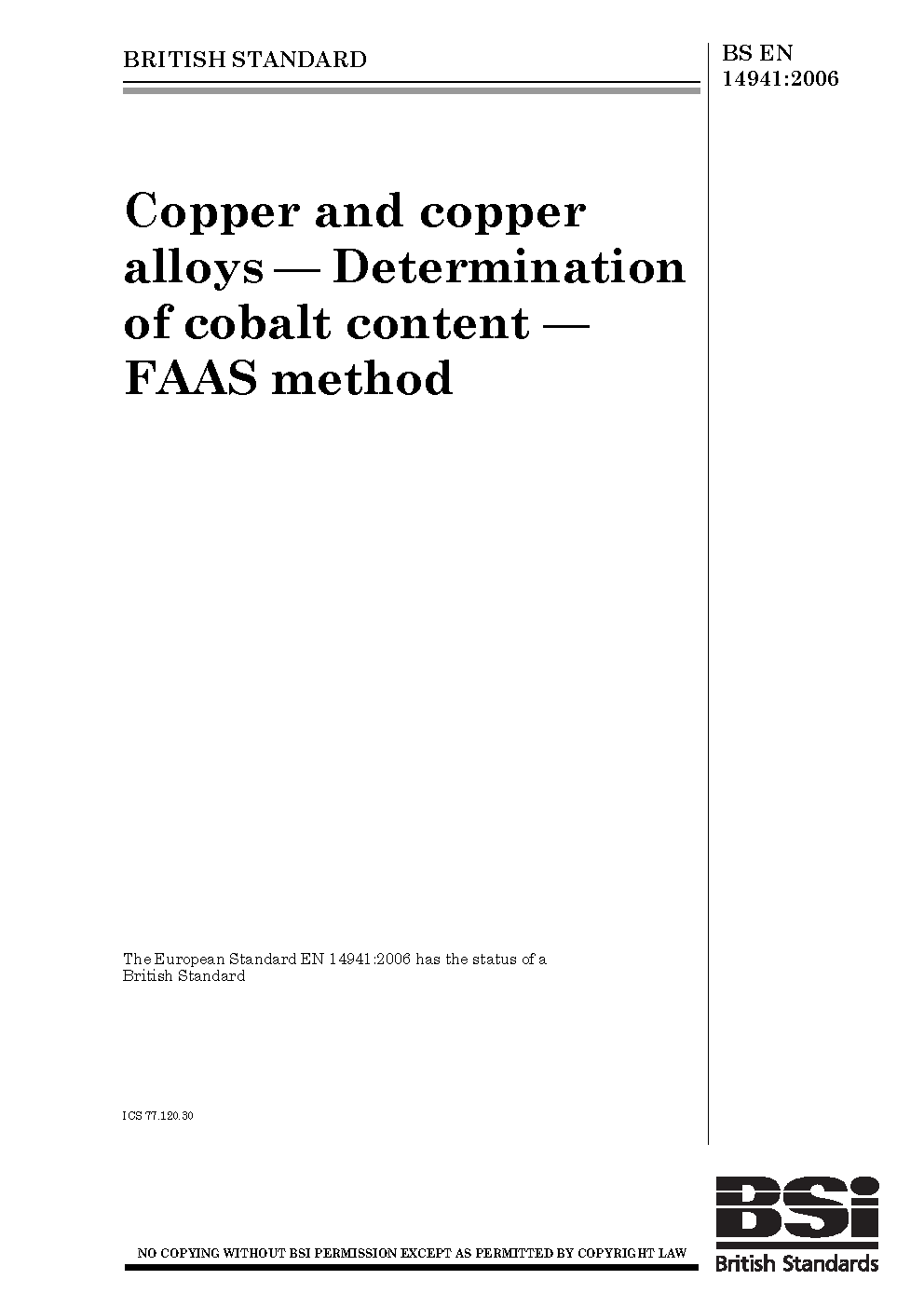 Copper and copper alloys. Determination of cobalt content. FAAS method