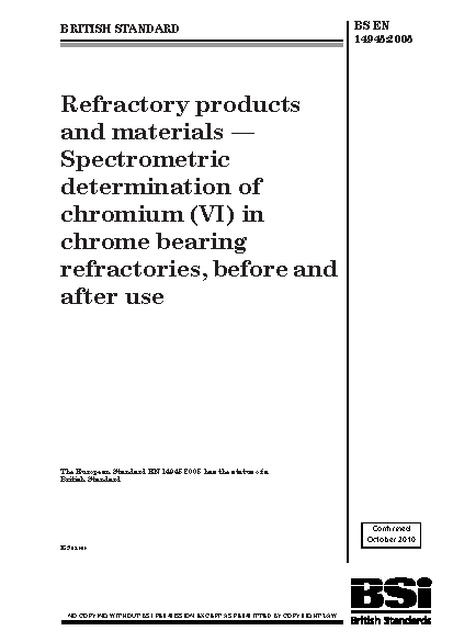 Refractory products and materials. Spectrometric determination of chromium (VI) in chrome bearing refractories, before and after use
