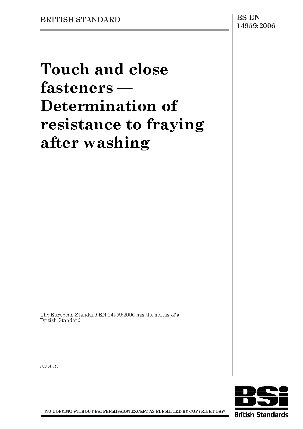 Clothing accessories;Fraying tests;Clothing;Mechanical testing;Fasteners (clothing)