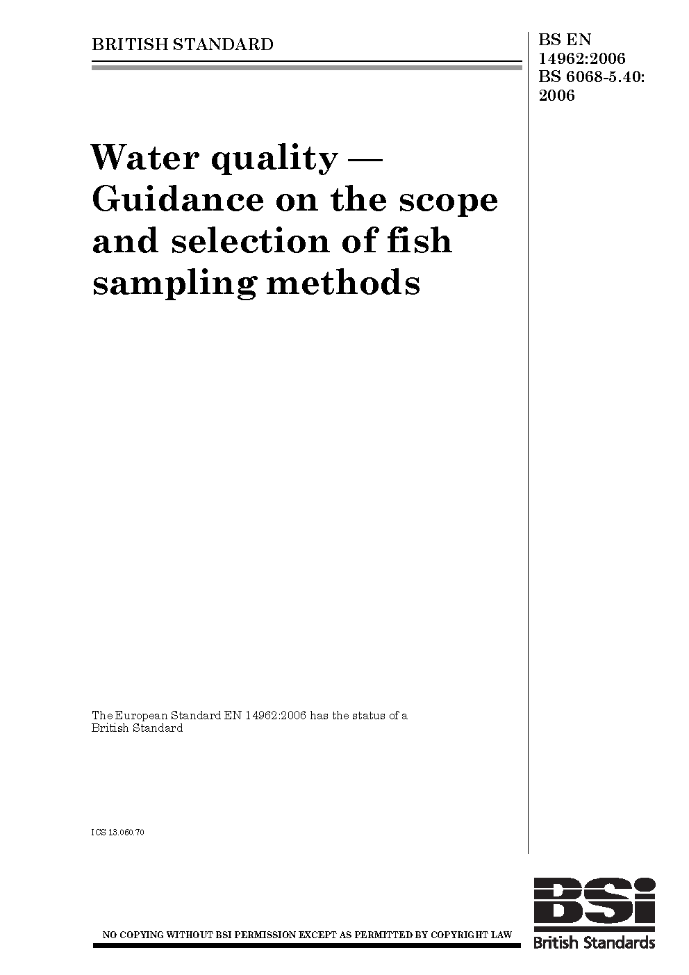 Water;Pisces;Aquatic biology;Water pollution;Lakes;Rivers;Sampling methods;Quality;Surface water;Water testing;Biological analysis and testing