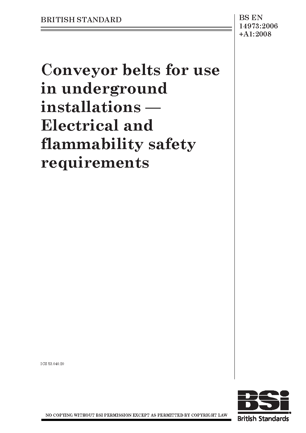 Conveyor belts for use in underground installations. Electrical and flammability safety requirements