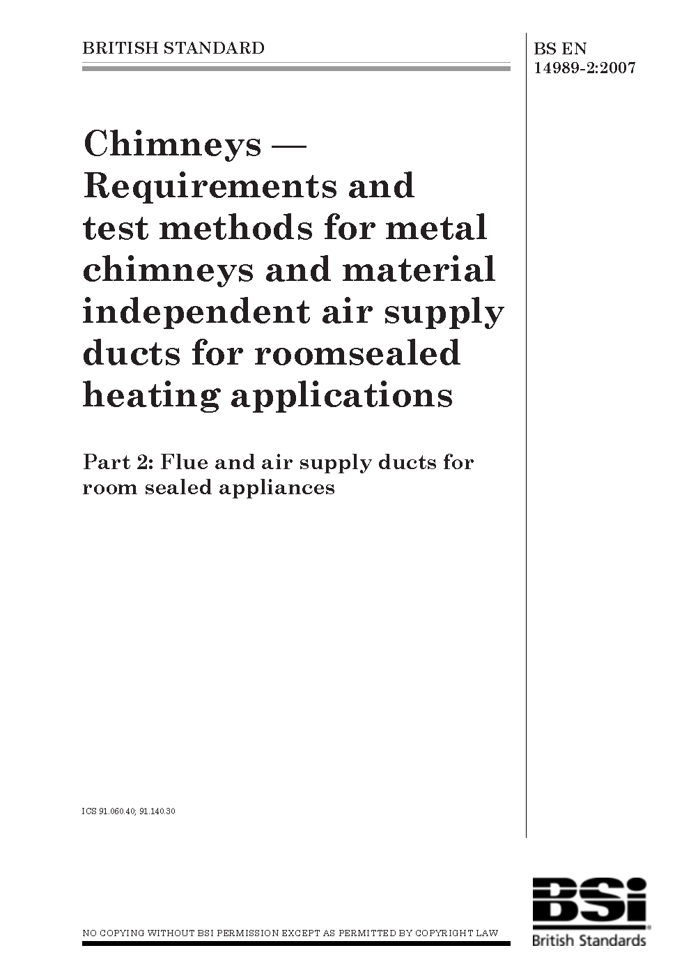 Chimneys. Requirements and test methods for metal chimneys material independent air supply ducts roomsealed heating applications Flue room sealed appliances