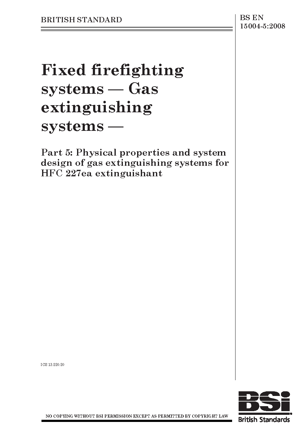 Fixed firefighting systems. Gas extinguishing systems Physical properties and system design of gas for HFC 227ea extinguishant