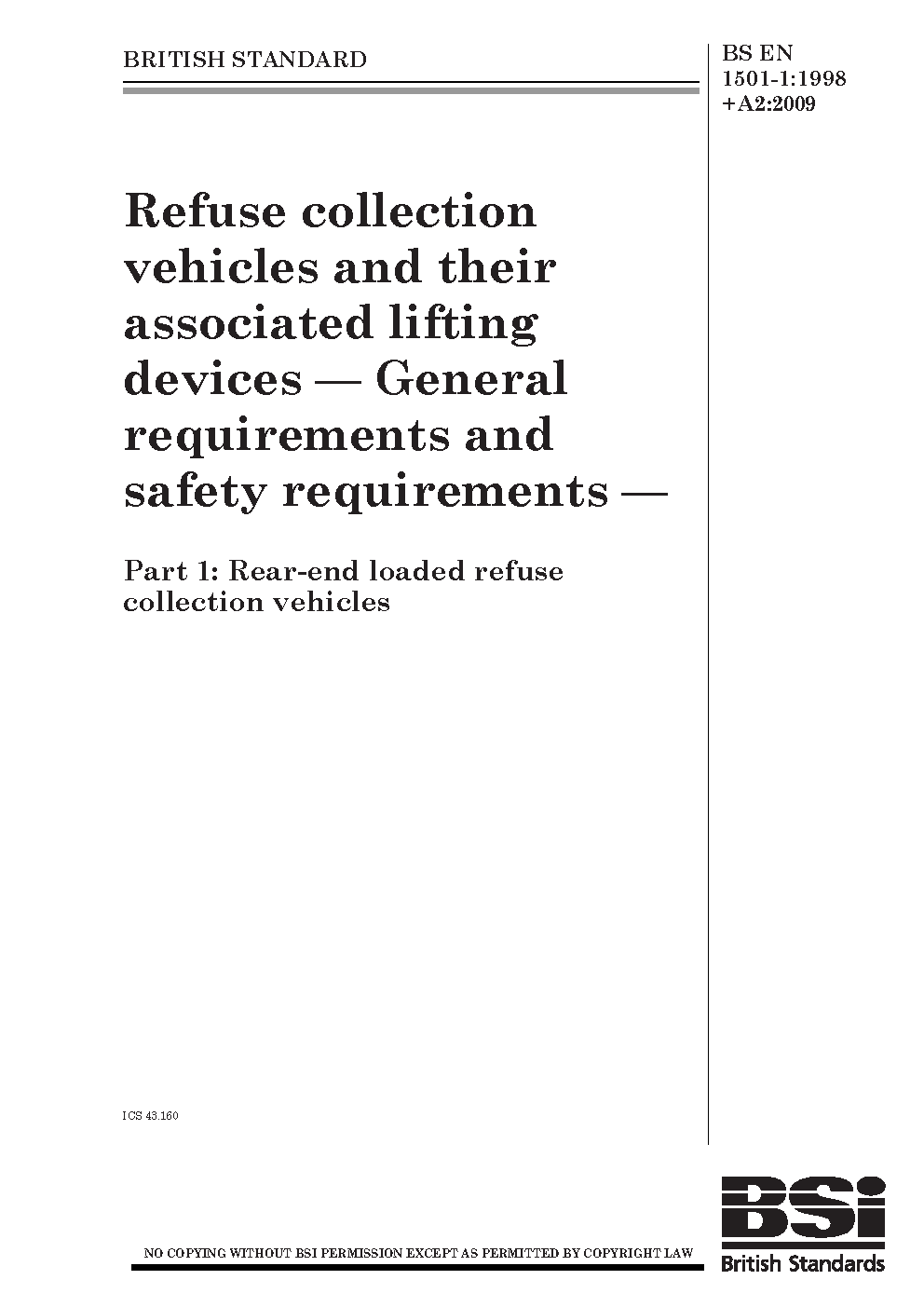 Refuse collection vehicles and their associated lifting devices. General requirements safety Rear-end loaded refuse