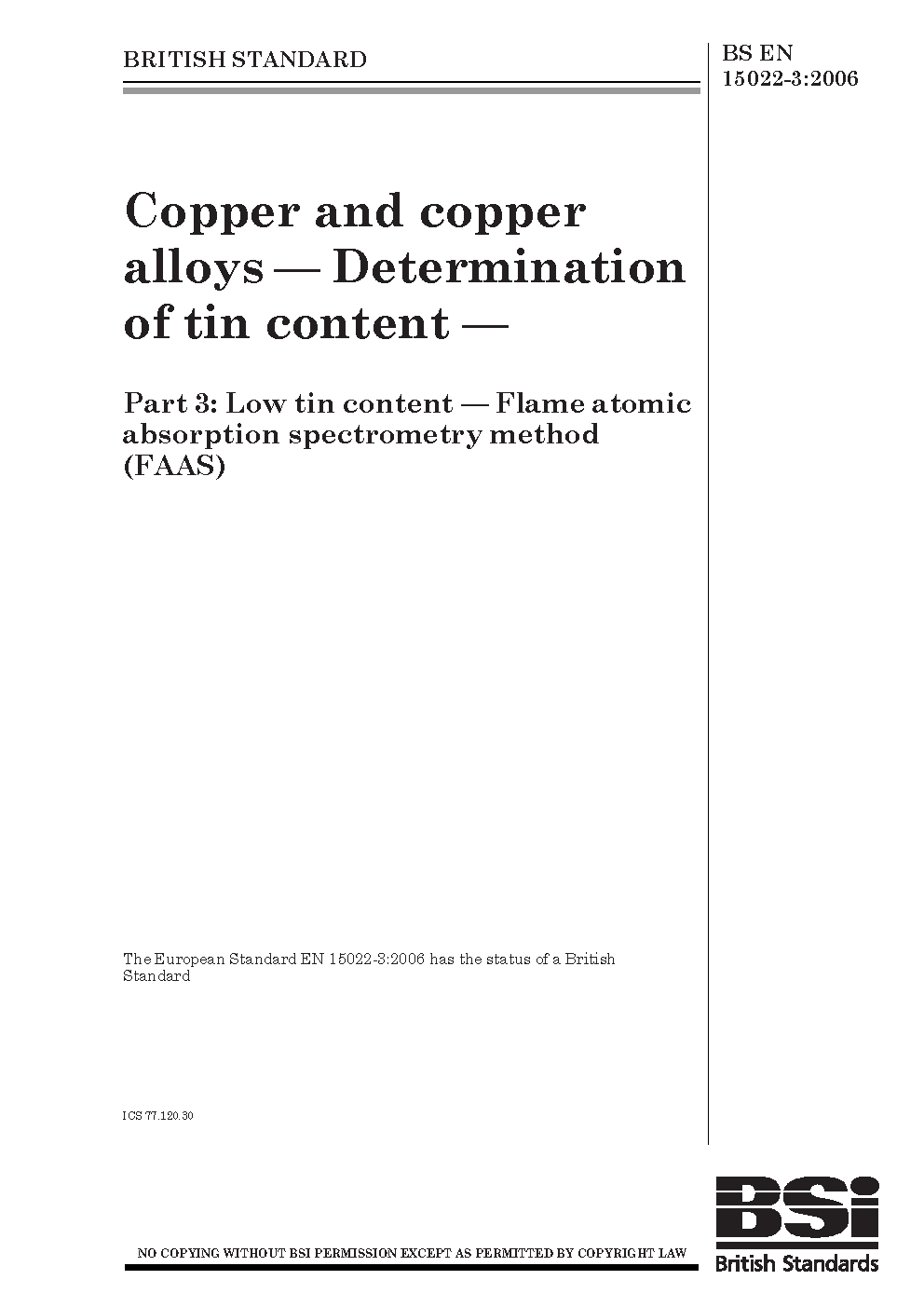 Flame atomic absorption spectrometry;Tin;Copper;Test equipment;Test specimens;Spectroscopy;Copper alloys;Determination of content;Spectrophotometry;Chemical analysis and testing
