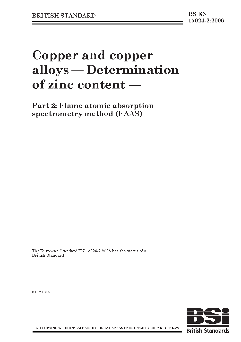 Copper and copper alloys. Determination of zinc content Flame atomic absorption spectrometry method (FAAS)