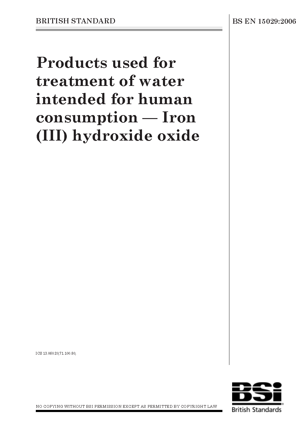 Products used for treatment of water intended for human consumption. Iron (III) hydroxide oxide