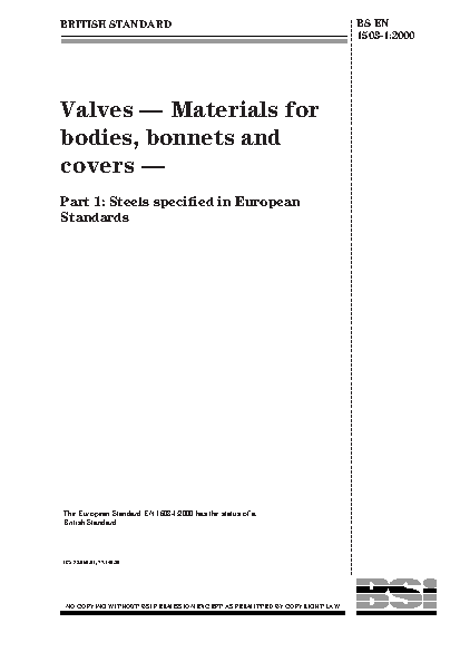 Valves. Materials for bodies, bonnets and covers Steels specified in European Standards
