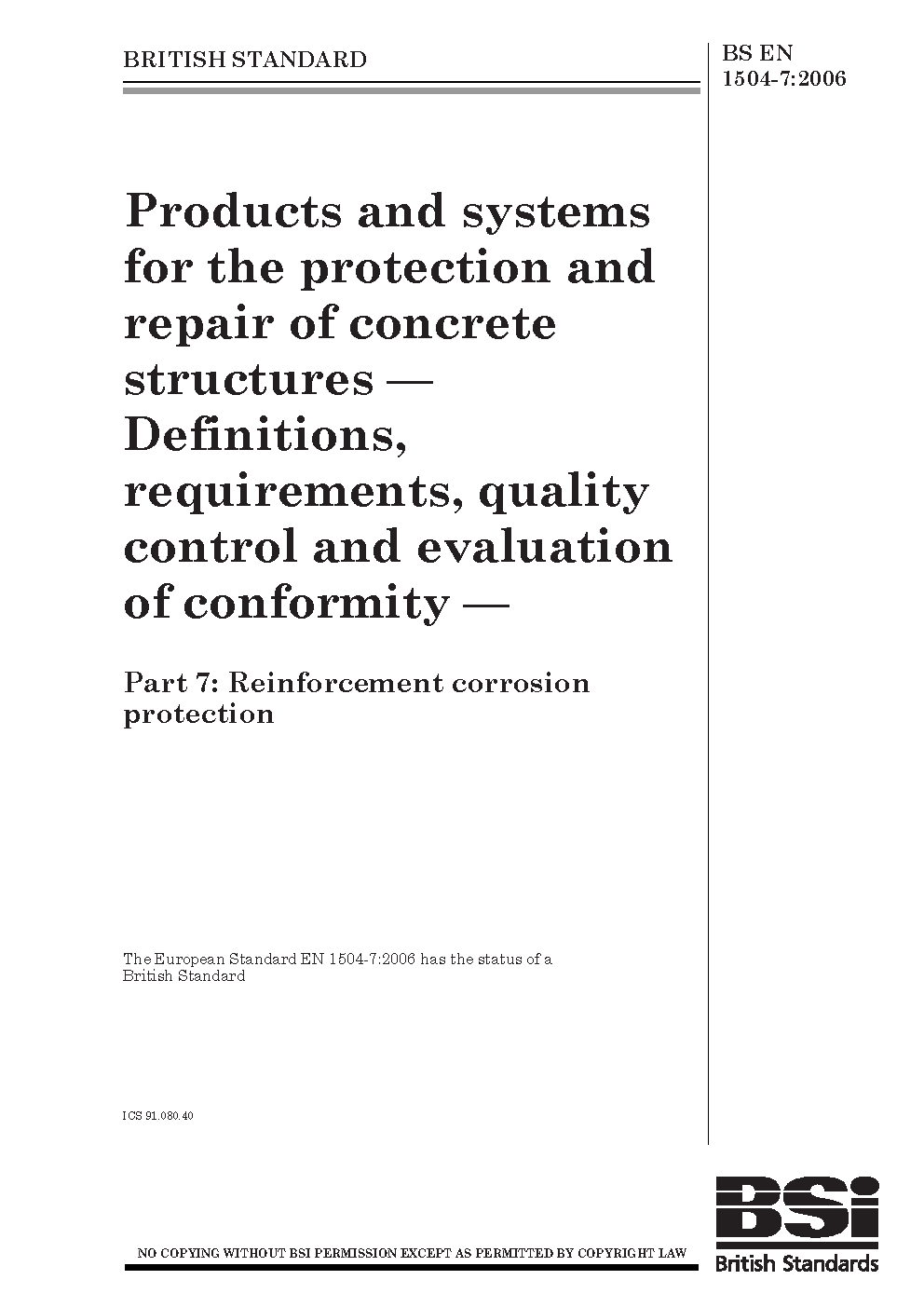 Products and systems for the protection repair of concrete structures. Definitions, requirements, quality control evaluation conformity Reinforcement corrosion