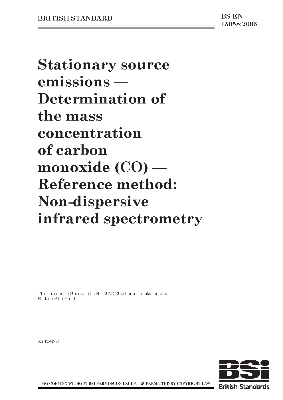 Stationary source emissions. Determination of the mass concentration of carbon monoxide (CO). Reference method: non-dispersive infrared spectrometry