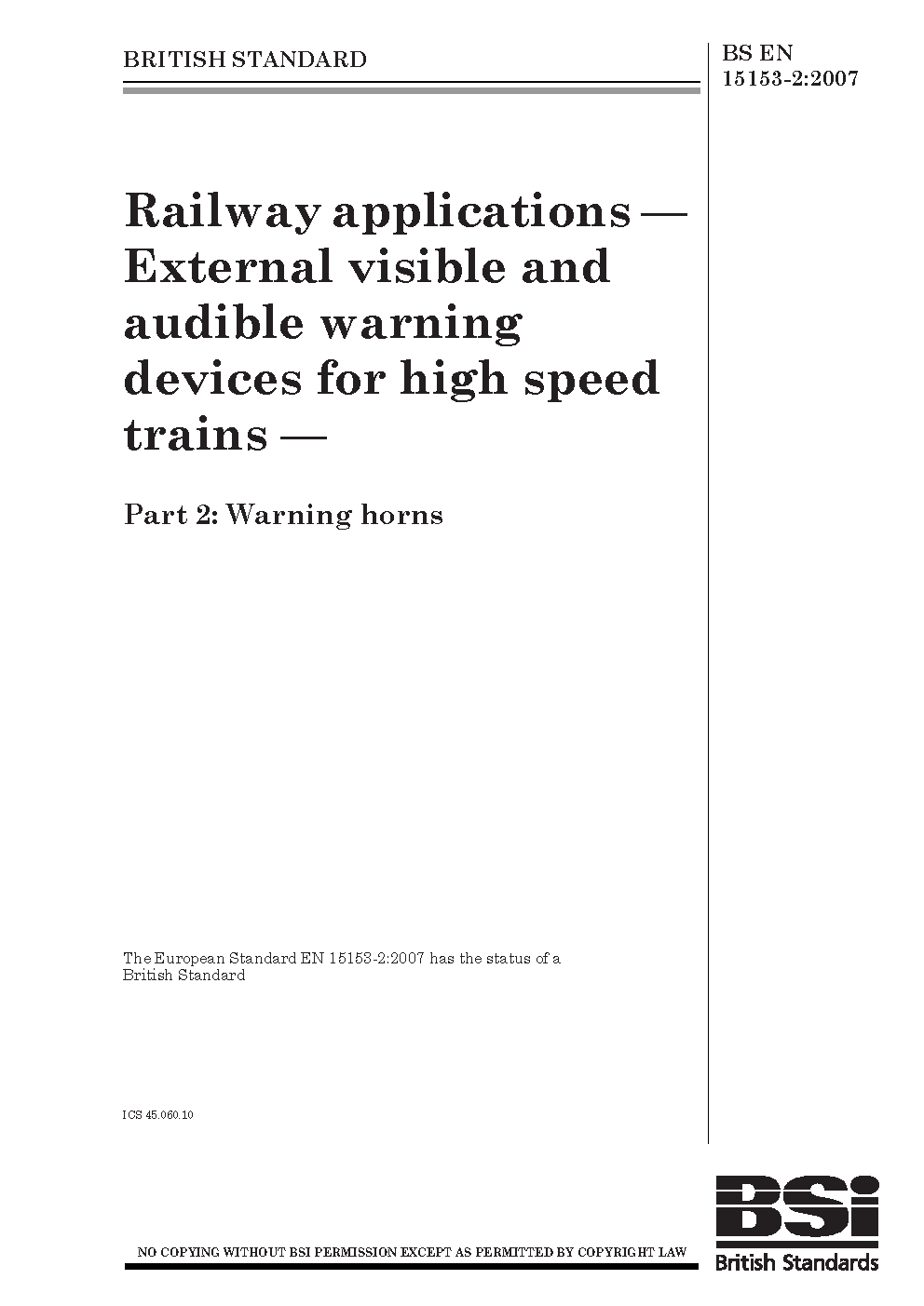 Railway applications. External visible and audible warning devices for high speed trains Warning horns