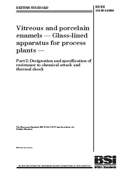 Vitreous and porcelain enamels. Glass-lined apparatus for process plants Designation specification of resistance to chemical attack thermal shock