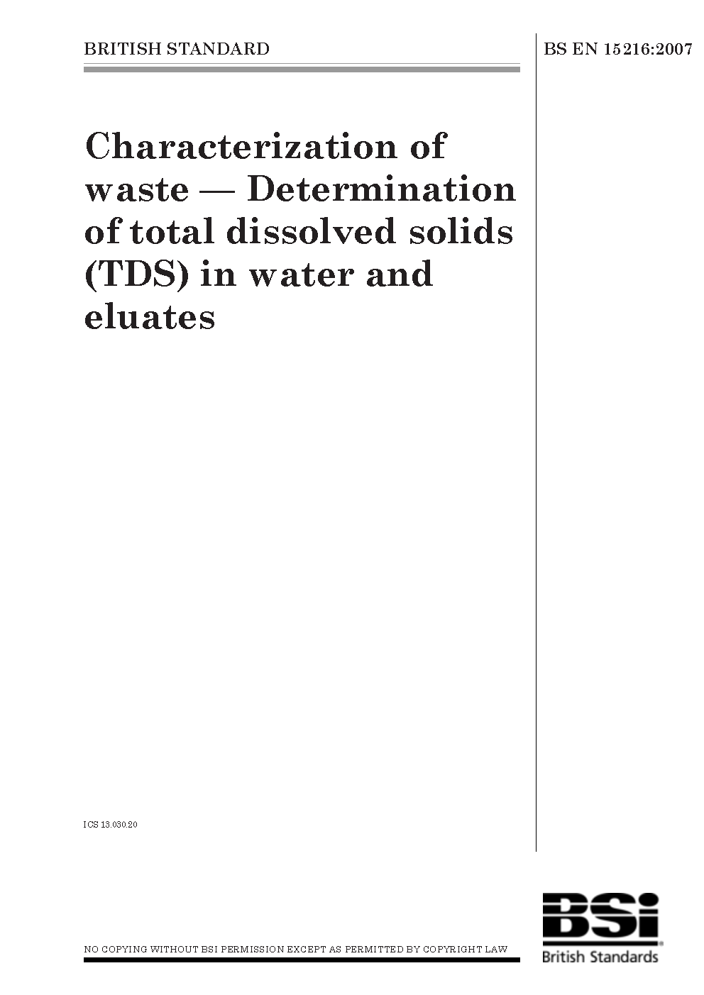 Characterization of waste. Determination of total dissolved solids (TDS) in water and eluates
