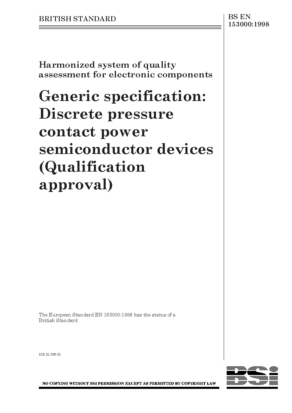 Harmonized system of quality assessment for electronic components. Generic specification: discrete pressure contact power semiconductor devices (qualification approval)