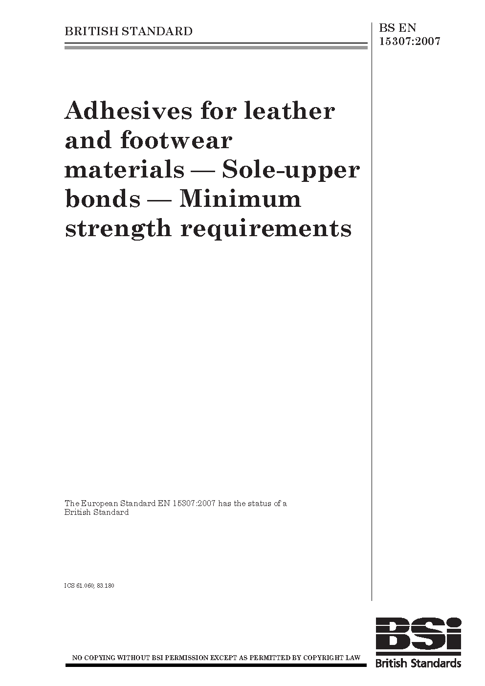 Adhesives for leather and footwear materials. Sole-upper bonds. Minimum strength requirements
