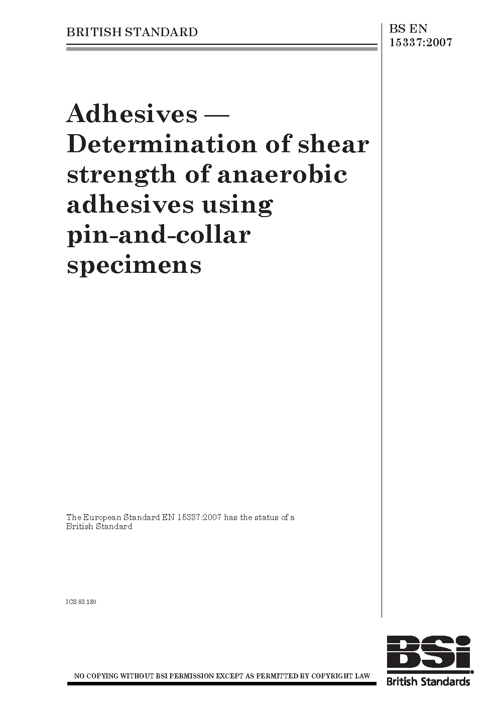 Adhesives. Determination of shear of anaerobic adhesives using pin-and-collar specimens