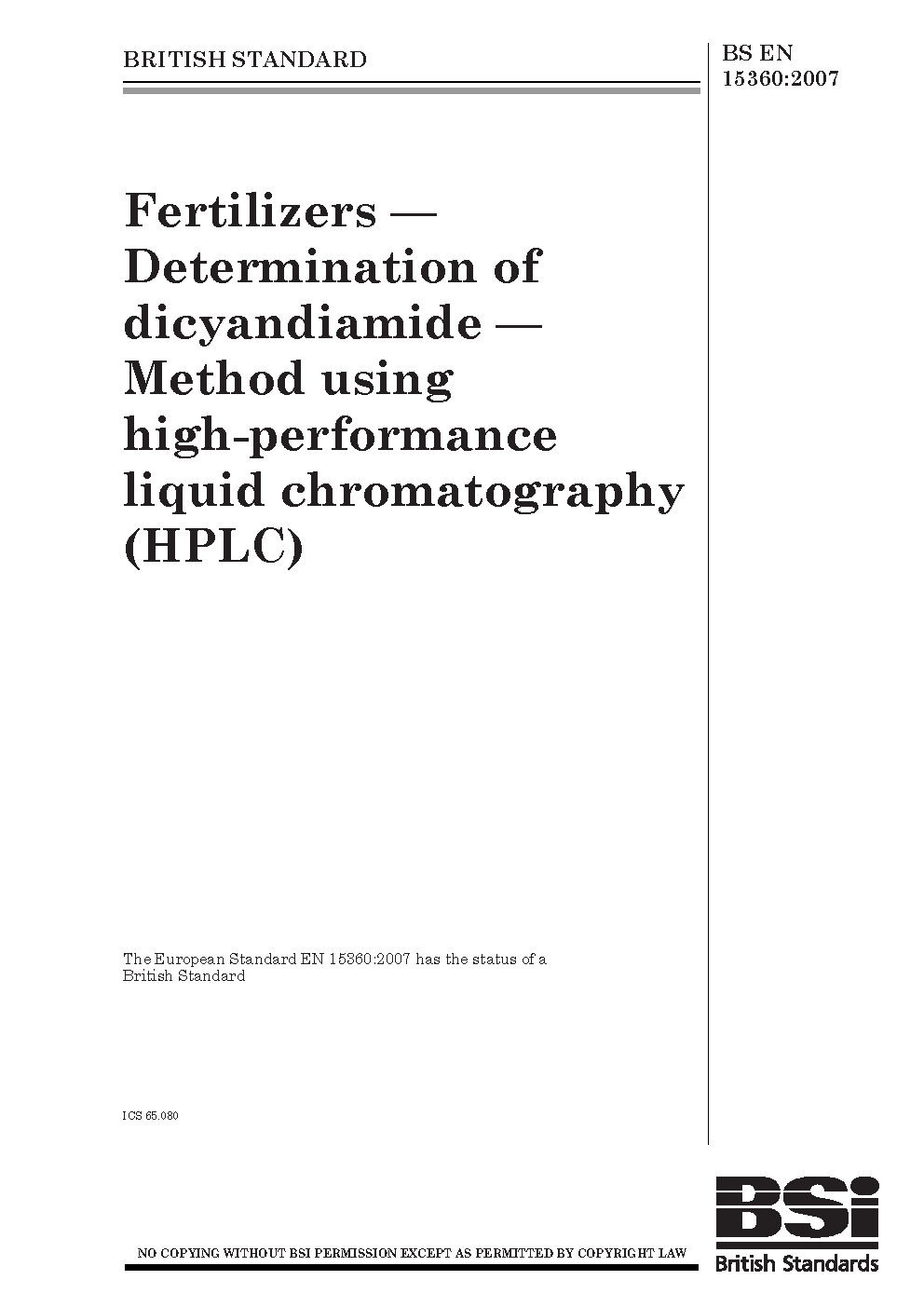 Fertilizers. Determination of dicyandiamide. Method using high-performance liquid chromatography (HPLC)