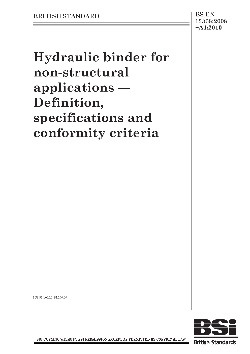 Hydraulic binder for non-structural applications Definition, specifications and conformity criteria