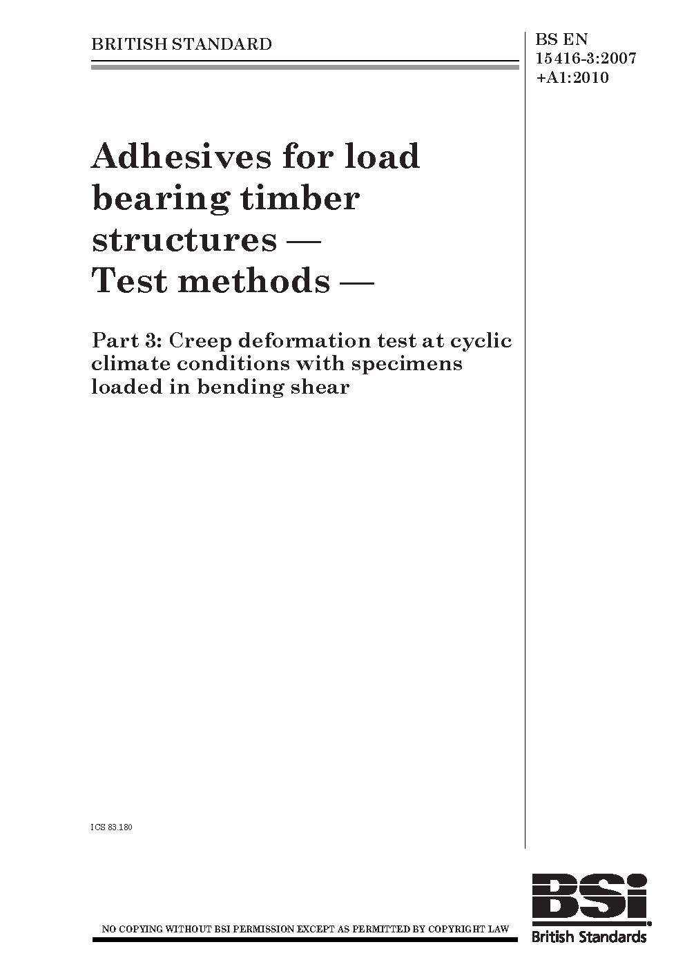 Adhesives for load bearing timber structures other than phenolic and aminoplastic. Test methods Creep deformation test at cyclic climate conditions with specimens loaded in bending shear