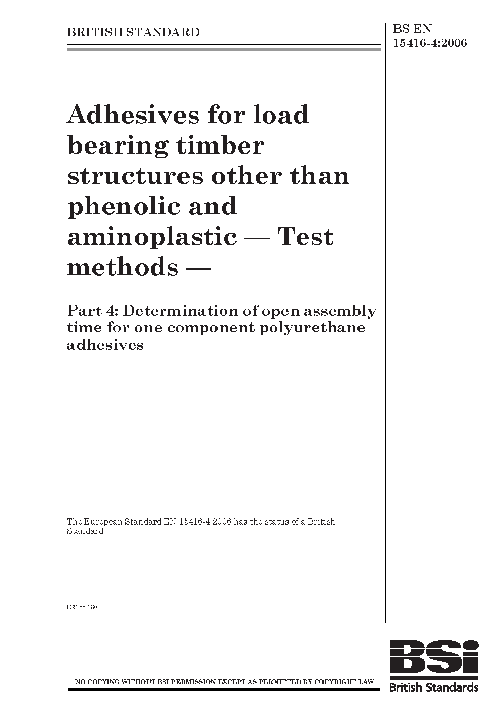 Adhesives for load bearing timber structures other than phenolic and aminoplastic. Test methods Determination of open assembly time one component polyurethane adhesives
