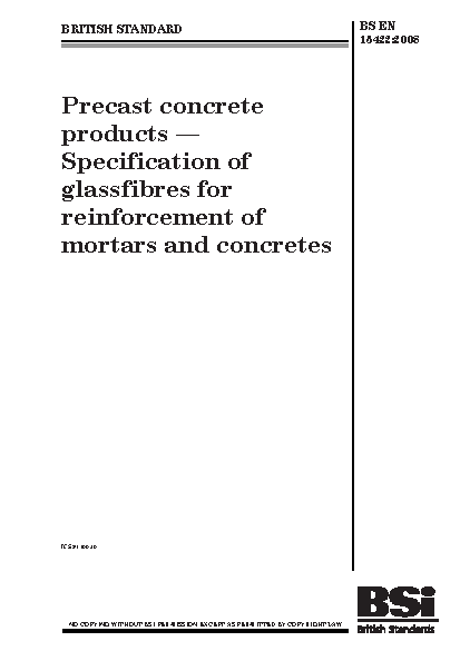 Precast concrete products. Specification of glassfibres for reinforcement of mortars and concretes