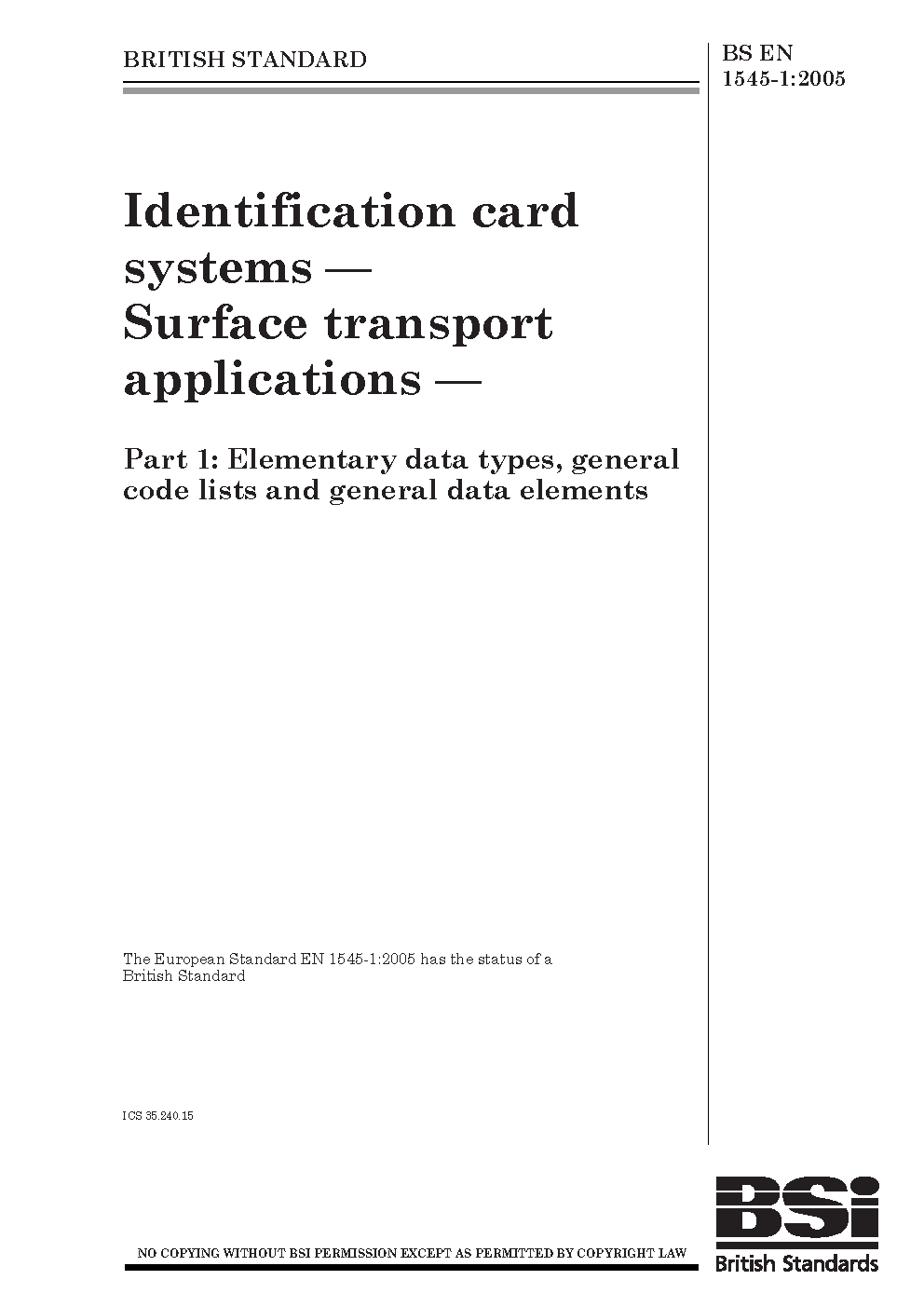 Identification card systems. Surface transport applications Elementary data types, general code lists and elements