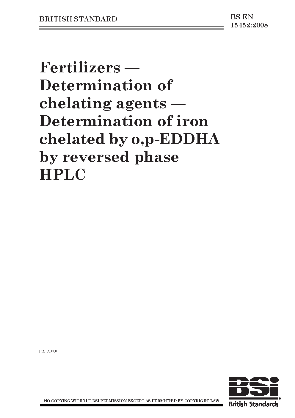 Liquid chromatography;Iron;Fertilizers;Soil improvement;Agricultural chemicals;Determination of content;Aqueous extraction methods;Chelating agents;Chemical analysis and testing
